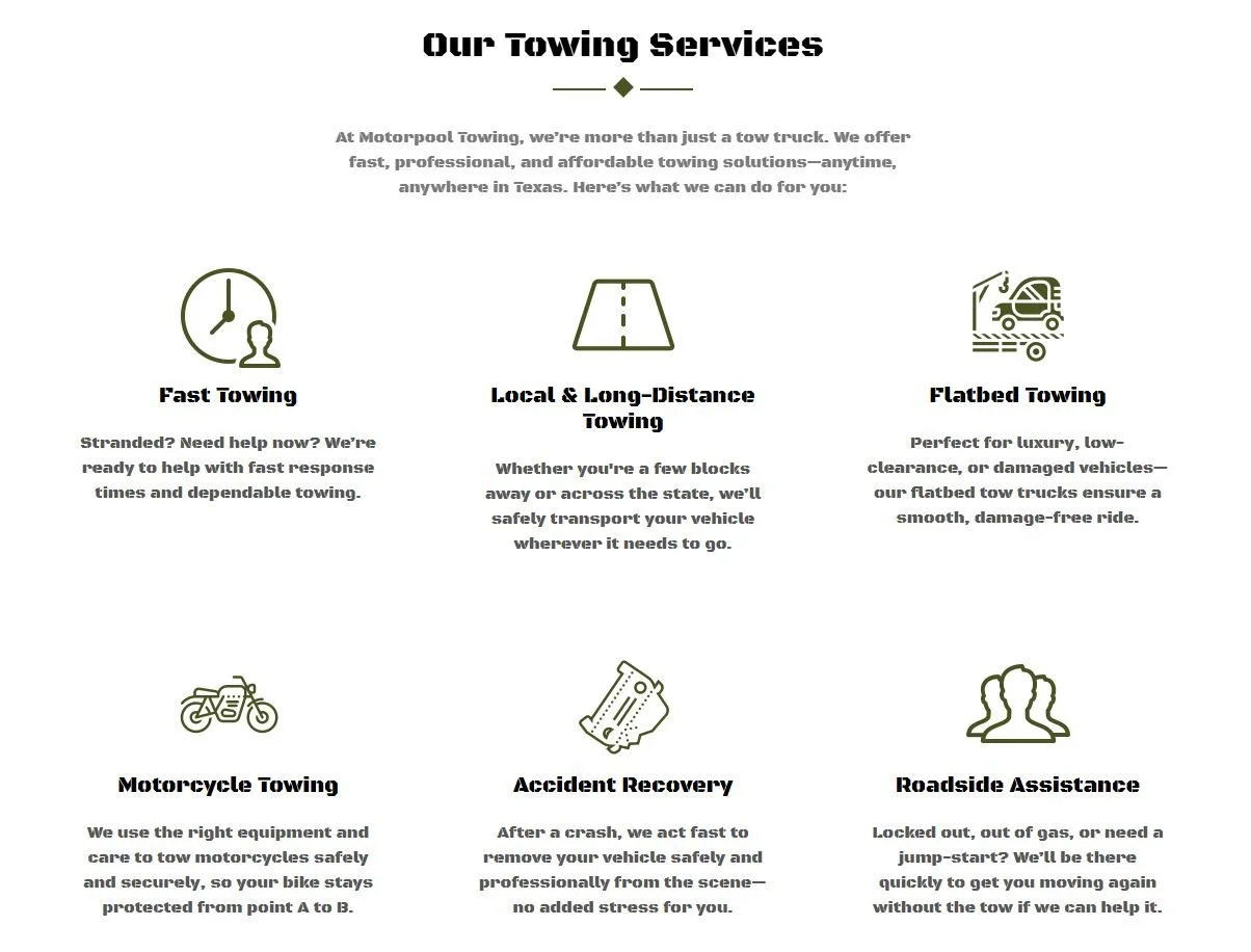 Call us for fast, dependable towing—wherever you are in San Antonio, we're ready to roll!"